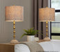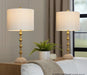 Malibu - Table Lamp (Set of 2) - Travertine, Gold Metal, Off-white Shimmer Shade