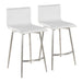 Mara - 26" Upholstered Fixed-Height Counter Stool With Swivel (Set of 2) - Stainless Steel And White Faux Leather