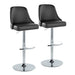 Marcel - Adjustable Barstool With Rounded T Footrest (Set of 2) - Chrome Metal And Black Faux Leather With Chrome Nailhead Trim