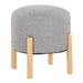 Introducing the Michelle Ottoman by LumiSource – a perfect blend of modern minimalism and cozy comfort. With its soft, textured upholstery and sleek wooden legs, this round stool adds a touch of elegance to any space. Ideal as an accent piece or footrest, the Michelle Ottoman effortlessly enhances your home decor.