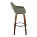 Mustang - 30" Fixed-Height Barstool With Swivel (Set of 2) - Walnut Wood And Green Fabric With Round Black Metal Footrest
