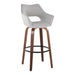 Mustang - 30" Fixed-Height Barstool With Swivel (Set of 2) - Walnut Wood And Gray Fabric With Round Black Metal Footrest
