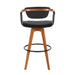 Oracle - 29" Fixed-Height Barstool With Swivel - Walnut Bamboo And Black Faux Leather With Round Black Metal Footrest