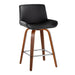 Santi - 25" Fixed-Height Counter Stool With Swivel (Set of 2) - Walnut Wood And Black Faux Leather With Square Chrome Metal Footrest