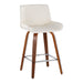 Elevate your space with the sleek Santi Fixed-Height Counter Stool by LumiSource. Featuring elegant bent wood legs and a plush faux leather seat, this stool offers modern sophistication with its minimalist armless design. The gently curved back and contoured seat edges provide both style and comfort, making it a perfect addition to your kitchen island or home bar. Available in various upholstery colors and finishes, choose the one that fits your space best!