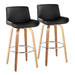 Santi - 30" Fixed-Height Barstool With Swivel And Round Chrome Metal Footrest (Set of 2) - Zebra Wood And Black Faux Leather