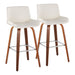 Santi - 30" Fixed-Height Barstool With Swivel And Square Chrome Metal Footrest (Set of 2) - Walnut Wood And White Faux Leather