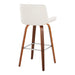 Elevate your space with the sleek Santi Fixed-Height Barstool by LumiSource. Featuring elegant bent wood legs and a plush faux leather seat, this stool offers modern sophistication with its minimalist armless design. The gently curved back and contoured seat edges provide both style and comfort, making it a perfect addition to your kitchen island or home bar. Available in various upholstery colors and finishes, choose the one that fits your space best!