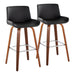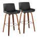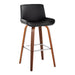 Santi - 30" Fixed-Height Barstool With Swivel And Square Chrome Metal Footrest (Set of 2) - Walnut Wood And Black Faux Leather