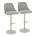 Studded - Marcel Adjustable Barstool (Set of 2) - Pearl Gray Metal, Light Gray Fabric, Brass Metal