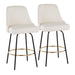 Studded - Marcel Fixed-Height Counter Stool (Set of 2) - Black Metal, White Faux Leather, Gold Metal