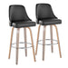 Studded - Marcel Fixed-Height Barstool (Set of 2) - Light Gray Wood, Black Faux Leather, Chrome Metal