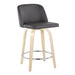 Comfort, modern simplicity, and classic lines define the appealing look of the Toriano Counter Stool by LumiSource. A padded upholstered seat sits on a fixed-height wooden tapered leg base with a metal footrest. Available in various colors, choose the one that suits your space best!