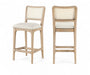 Atrium - Cane Back And Vegan Leather Upholstered Seat Counter Stool (Set of 2) - Cream / Brushed Natural