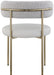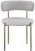 Give your dining room a modern boost with this Beacon vegan leather and boucle fabric dining chair. This pretty chair has the contemporary design elements you're looking for, from its curvy back to its thickly padded seat and brushed brass-finished metal frame. Vegan leather provides the look of the real thing without the maintenance requirements.