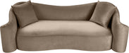 Indulge in pure luxury with the Destin velvet sofa, featuring plush, oversized cushions and soft velvet upholstery for optimal comfort. Wrap yourself in comfort with a structural masterpiece offering a refreshing yet timeless aesthetic. The organic curves and plush velvet create a truly unique and eye-catching design.