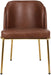 Give your dining room an upscale look with this Jagger vegan leather dining chair. The seat and back of this lovely chair comes upholstered in vegan leather material that looks so genuine, only you will know it's not the real thing. Brushed gold iron legs on this chair lend it an upscale look and adds to its overall contemporary panache.