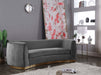The perfect mix of velvet and stainless steel comes to life in your space with this Julian Sofa. This bold velvet sofa comes upholstered in rich, sumptuous-to-the-touch velvet to make a fashionable statement in your space. The curved back design lends it a modish touch, and the stainless steel trim around its base adds to its glitzy appeal. Stage this sofa alone or with other pieces in the Julian collection.