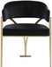 Give your dining area a show-stopping new look when you bring home one or more of these Madelyn velvet dining chairs. The Madelyn chair is all about comfort and style with its barrel-back design and its sophisticated lines. Upholstered in luxurious beige velvet that's inviting to the skin and super soft to the touch, this chair features an iron metal frame for durability and lasting use in your busy home. The brushed brass finish adds a final modish touch to this lovely dining chair.