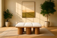 Bring valuable seating and remarkable style to your space with this Pavilion boucle fabric bench, an exquisite balance of style and usability for the entryway, bedroom, and beyond. Crafted from oak veneer with a walnut brown finish, this bench has a 4-inch-thick seat cushion that's channel-tufted for a touch of luxury. The bench's columnar bases add a dash of art deco design, making it a captivating focal point in any room.