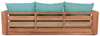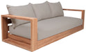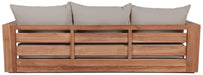 Make this Tulum teak outdoor patio sofa the go to spot for relaxing and entertaining guest in your outdoor space. This sofa features resilent water resistant fabric making it the perfect spot to rest your feet and enjoy the company of friends or family while you take in the sunrise. Teak construction makes it a tough addition for the patio or porch and gives it the longevity and durability it needs to weather the elements with beautiful ease. Pair it with other items from the Tulum collection for a look that impresses from every angle.