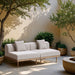 Sleek lines and soft water-resistant fabric bring contemporary style to the Laguna outdoor patio modular loveseat. Crafted with a natural teak finish aluminum frame and quick-dry foam, it's built for ultimate outdoor relaxation. Rearrange or add to the set for endless configurations, creating a versatile lounging experience tailored to your space.