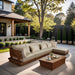 Mirella - 5 Piece Water Resistant Fabric 113" Upholstered Outdoor Patio Modular Sectional - Tan