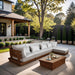 Mirella - 5 Piece Water Resistant Fabric 150" Upholstered Outdoor Patio Modular Sectional - Tan