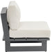 Create your own custom contemporary look on the deck or porch with the addition of this Maldives outdoor patio armless chair. Part of a large collection that lets you mix and match modular pieces to get the look you crave most. This armless chair has water resistant fabric with a base made from grey aluminum, so it's sturdy, tough, and ready to face the elements with impeccable beauty, season in and season out. Shop the contemporary pieces in this collection to create the outdoor entertaining area of your dreams.