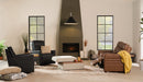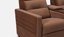 Reece begins with a transitional narrow track arm with heavily padded inside and outside panels. The outside arm panels have been further enhanced with two horizontal channels. The seat and backs mirror the track arm with box border styling and the backs include a decorative pull tuck detail and sits atop tapered solid walnut block legs. Reece comes standard with triple motor functionality; power footrest, power headrest and power lumbar.