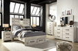 Cambeck - 5 Pc. - Dresser, Mirror, Full Panel Bed with 2 Storage Drawers - Whitewash