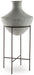 Take an effortlessly inviting approach to floor decor. This vase's distressed, textured look in a neutral hue pairs with a variety of casual color palettes. An espresso brown stand adds charming contrast to the look. And this vase enthusiastically welcomes faux florals and filler, perfectly adapting to the seasons when you swap out your arrangements.