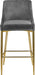Yield to your contemporary side with this Karina Stool. This modern stool is counter height, making it an ideal addition to a home bar or eat-in kitchen counter. The velvet upholstery brings a neutral element to your room, so it can easily meld with other furnishings. Plump seat and back cushions ensure that guests sit comfortably, whether they're enjoying a sudsy brew or a stack of pancakes. The polished metal frame is sturdy and stout, adding a durable slant to this lovely stool.