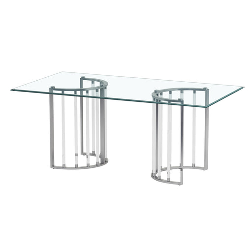 ChintalyModern rectangular glass dining table with a tempered super white Starphire glass top on a polished stainless steel frame with Y-shaped legs.Featur...