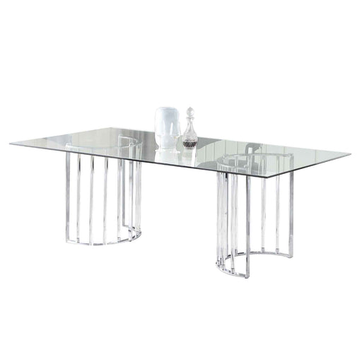 Original price $2,184.80Original price $2,184.80 - Original price $2,184.80Original price $2,184.80Current price $1,201.64$1,201.64 - $1,201.64Current price $1,201.64Chintaly TRISHA 36"x 60" Glass Top Dining Table w/ Steel & Acrylic Base Clear,Clear / Chrome