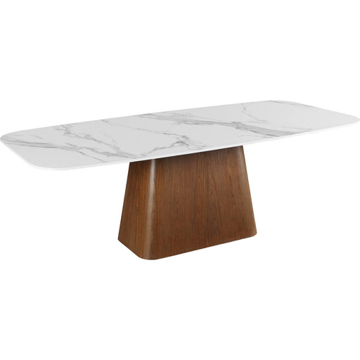 ChintalyEntertain in style with this contemporary dining table. Featuring a 12mm white marbleized sintered stone table top set on an artful two-tone brushe...