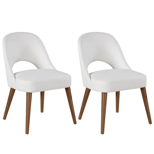 ChintalyA beautiful and comfortable dining chair with a modern appeal. Featuring luxurious white faux leather upholstery, warm wooden legs in a rich walnut...