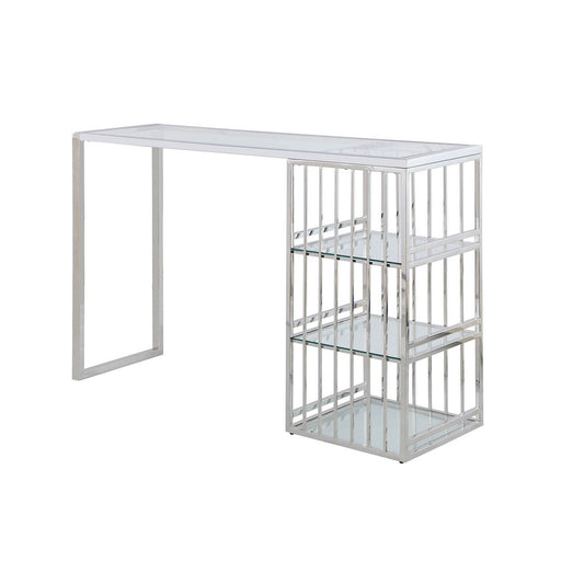 ChintalyThis bar features a clear tempered glass top on a polished stainless steel frame, with 3 glass shelves for storage that can be assembled on either ...