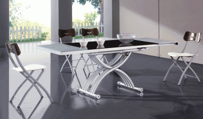 ESF2109 Table transformer, transforms from dining table to coffee table. Form meets function in this dining room set. The table and chairs are foldabl...