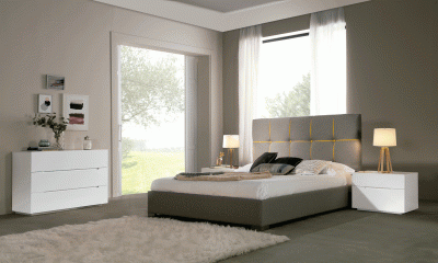 ESFModern Bedroom Furniture set w/Storage made in Spain. Headboard color : Grey-Yellow Nightstand & Dresser Finish : White High Gloss Nightstand...