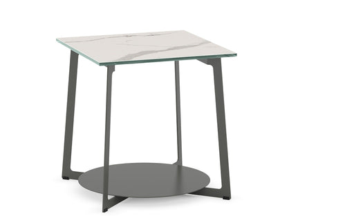 AmiscoFeatures: Type: Italian Porcelain On Glass Tabletop Glass Tabletop Finish: (Statuario marble finish) Dimensions: 19 1/2"W x 19 1/2"L x 1/2"H Produc...
