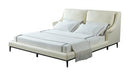 Stylish modern top grain leather bed in off white cream color #5825. Metal frame included.