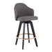 Ahoy - 26" Fixed-Height Counter Stool (Set of 2) - Black Wood Legs And Round Gold Metal Footrest With Gray Fabric Seat