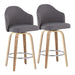 Ahoy - Fixed-Height Counter Stool (Set of 2) - Zebra Wood Legs And Round Chrome Footrest With Gray Fabric