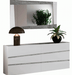 The luminous white and Carrara marble finish of the tops and the inserts between the drawer fronts are