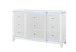 The Alina Dresser is an exquisite fusion of functionality and style. Its white finish harmonizes with LED-lit crushed glitter, while the perforated silver glam drawer fronts provide ample storage space that's as accessible as it is striking. Each pull is a statement of luxury, ensuring your storage solutions are never dull.