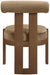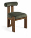 Elegant and sculptural, the Arienzo velvet upholstered dining chair adds Art Deco sophistication to any dining space. Its ultra-luxe velvet upholstery pairs beautifully with walnut-finished solid wood legs for warmth and stability. With its distinctive rounded backrest, this chair blends comfort with timeless style.