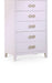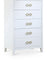 Bring unique elegance to your bedroom with this Bowtie chest from Meridian Furniture. This chest features five drawers, providing you with plenty of storage space for clothes, linens, or miscellaneous objects. Its light color adds a touch of femininity to your living space, and its brushed bow tie handles complement your existing decor. Its flat top is perfect for placing a lamp, framed picture, books, bric-a-brac, and more.