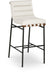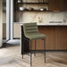 Kick back and relax with a drink in your hand with this Burke counter stool. Featuring soft black vegan leather upholstery and black vegan leather straps, this stool is cozy and stylish. Its matte metal frame provides sturdy support so you can enjoy this stool for years to come. A oak veneer metal dowel is tucked firmly in place beneath the front of the stool, providing extra support and added style.