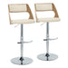 Cecina - Adjustable Barstool With Swivel And Rounded T Footrest (Set of 2) - Chrome Metal, Zebra Wood, And Cream Faux Leather